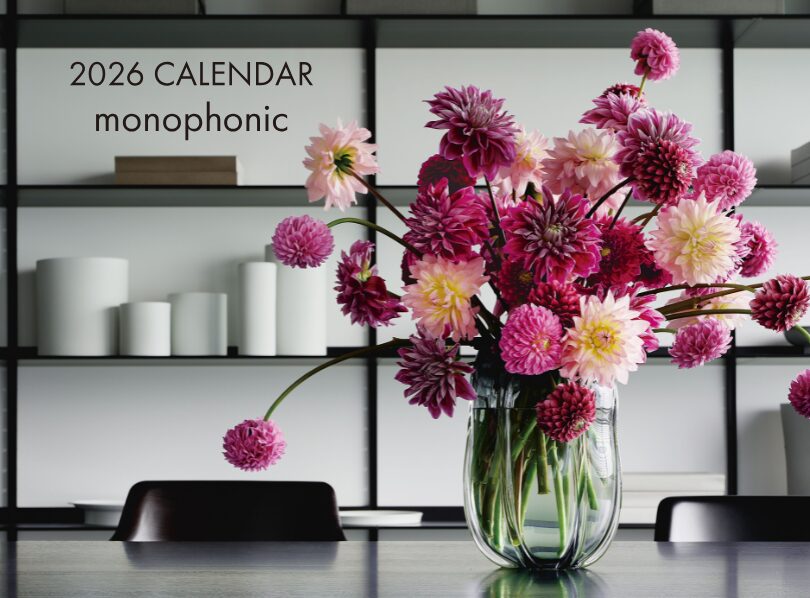 毎年好評いただいている日比谷花壇グループの花とみどりによるオリジナルカレンダー。2026年版は『monophonic』をテーマに、一つの旋律のみで構成される荘厳な音楽のように、精選した単一の生花で美しき花のハーモニーを表現しました。各月1品目の花材をセレクトし、花とみどりの素材の美しさを活かしたアレンジデザインを、日比谷花壇が誇るフローリスト13名が手掛けています。
