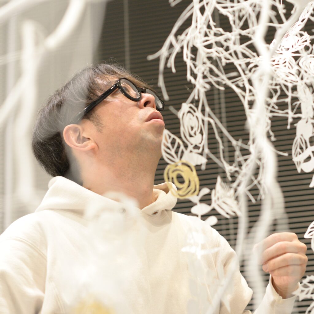 歴史ある日比谷花壇本店をペーパーアートで飾ることができ、大変嬉しく思います。クオリティ高い花々があることで、繊細な切り絵のガーランドがより際立ち、上質でクリエイティブな空間ができたと思います。自分としても新しい発見がたくさんありました。 沢山のお客様に見ていただき、イマーシブな空間を体感してもらえたら嬉しいです。