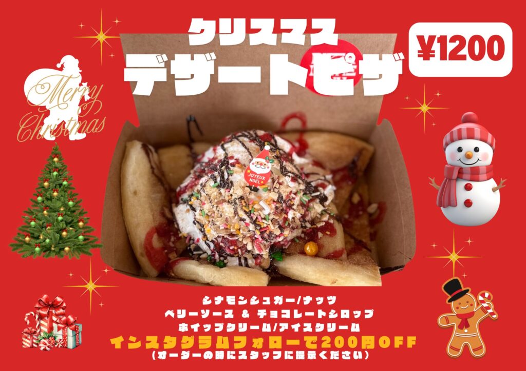 揚げたピザ生地にシナモンシュガー、ナッツ、ベリーソース&チョコレートシロップ、ホイップクリーム、アイスクリームなどをトッピング。温かいピザ生地に冷たいトッピングを合わせた最高な組み合わせのデザートピザです。