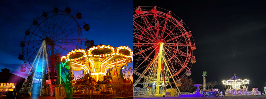 観覧車やメリーゴーランドが期間限定でライトアップします。いつもと違う幻想的な雰囲気をお楽しみください。