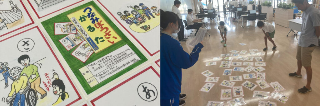 震災の教訓をより身近に感じてもらうため、分かりやすい言葉と親しみやすい絵札で構成されたオリジナル「手作り防災かるた」を導入。近隣の保育園などで使ってもらうことで、子供から大人まで、楽しみながら防災意識を育める工夫を凝らしています。