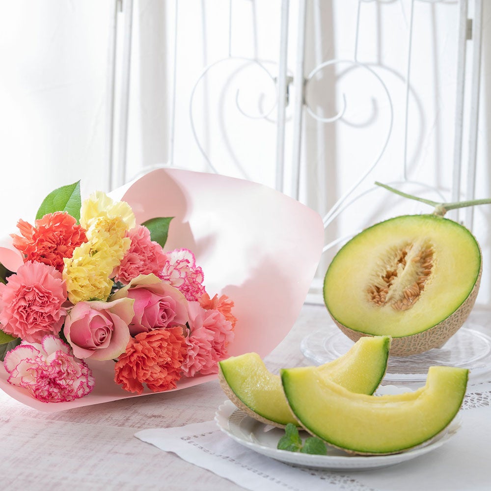 ■銀座千疋屋「マスクメロン」と花束のセット(果物別送)