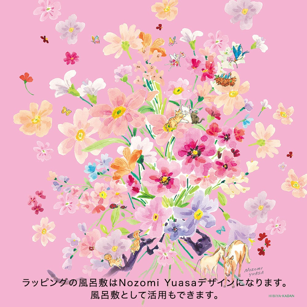今回のテーマ「想いの循環」を湯浅氏ならではの優しく華やかな世界観で表現したこのアートを、ギフトに添える「お花の妖精タグ」や、京都の老舗風呂敷ブランド「むす美」と共同制作したオリジナル風呂敷ラッピングに採用。さらに、母の日商品に同封される限定デザインカードなど、心ときめくアートでお母さんへの想いを彩る多彩なアイテムをご用意しました。