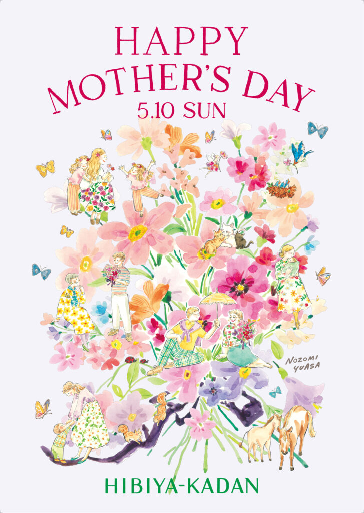今年は、人気イラストレーター湯浅望氏とのコラボレーションを展開します。日比谷花壇限定の描き下ろしアートワークは、お母さんへの「ありがとう」から始まる親子の絆が、愛と平和の大きな輪になって世界へ広がっていく。そんな温かな願いが込められた特別なデザインです。
