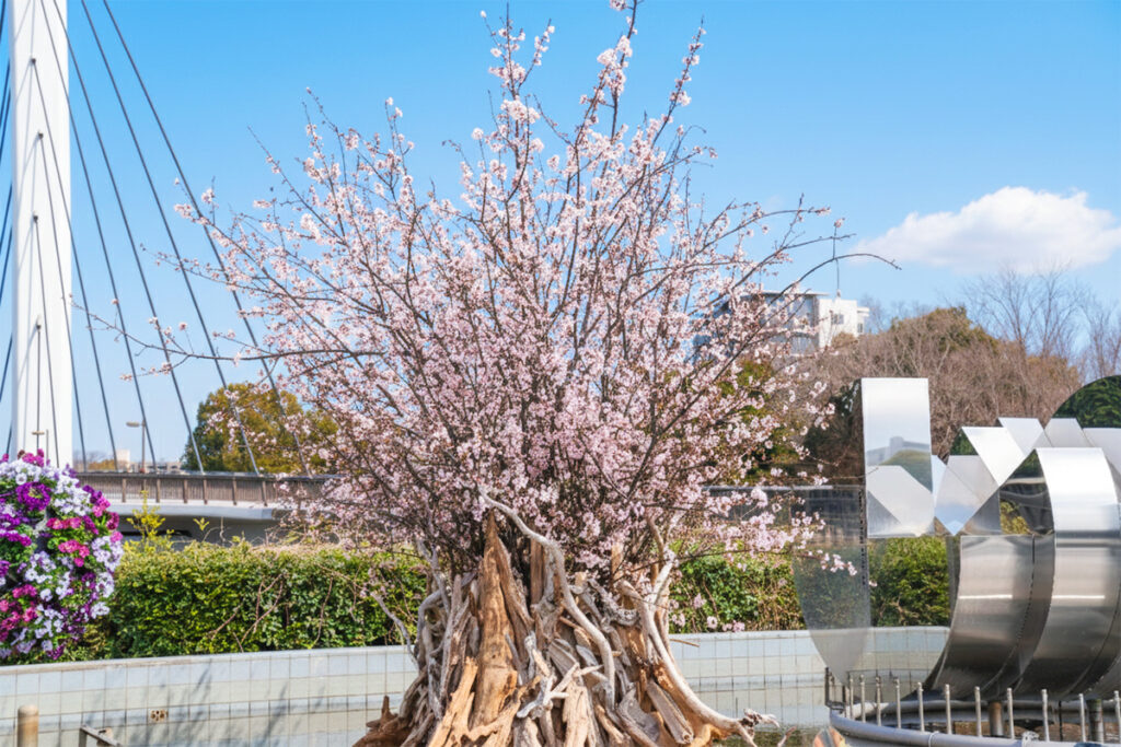 宙に浮く新感覚の桜型フラワーアート「立体的花壇」