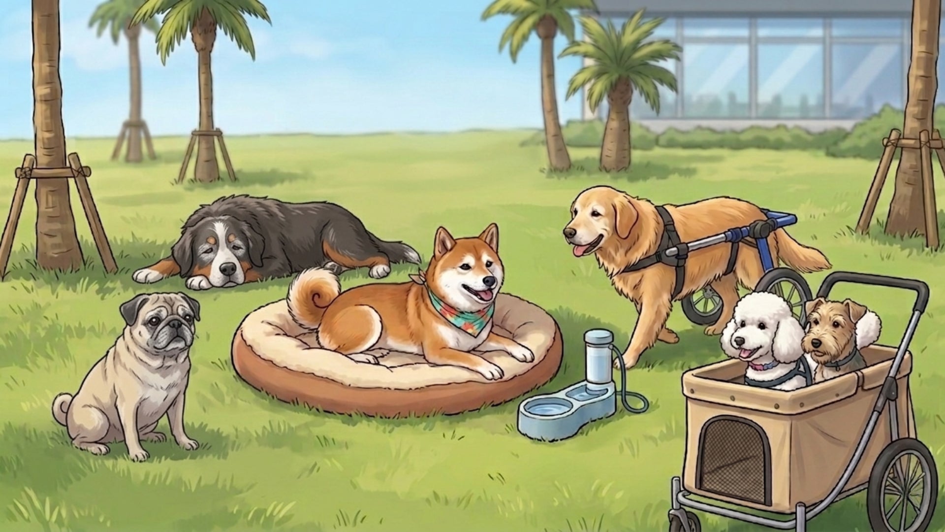 シニア犬や身体が不自由なハンディキャップを持つワンちゃんが、のんびり過ごせるドッグランが登場。