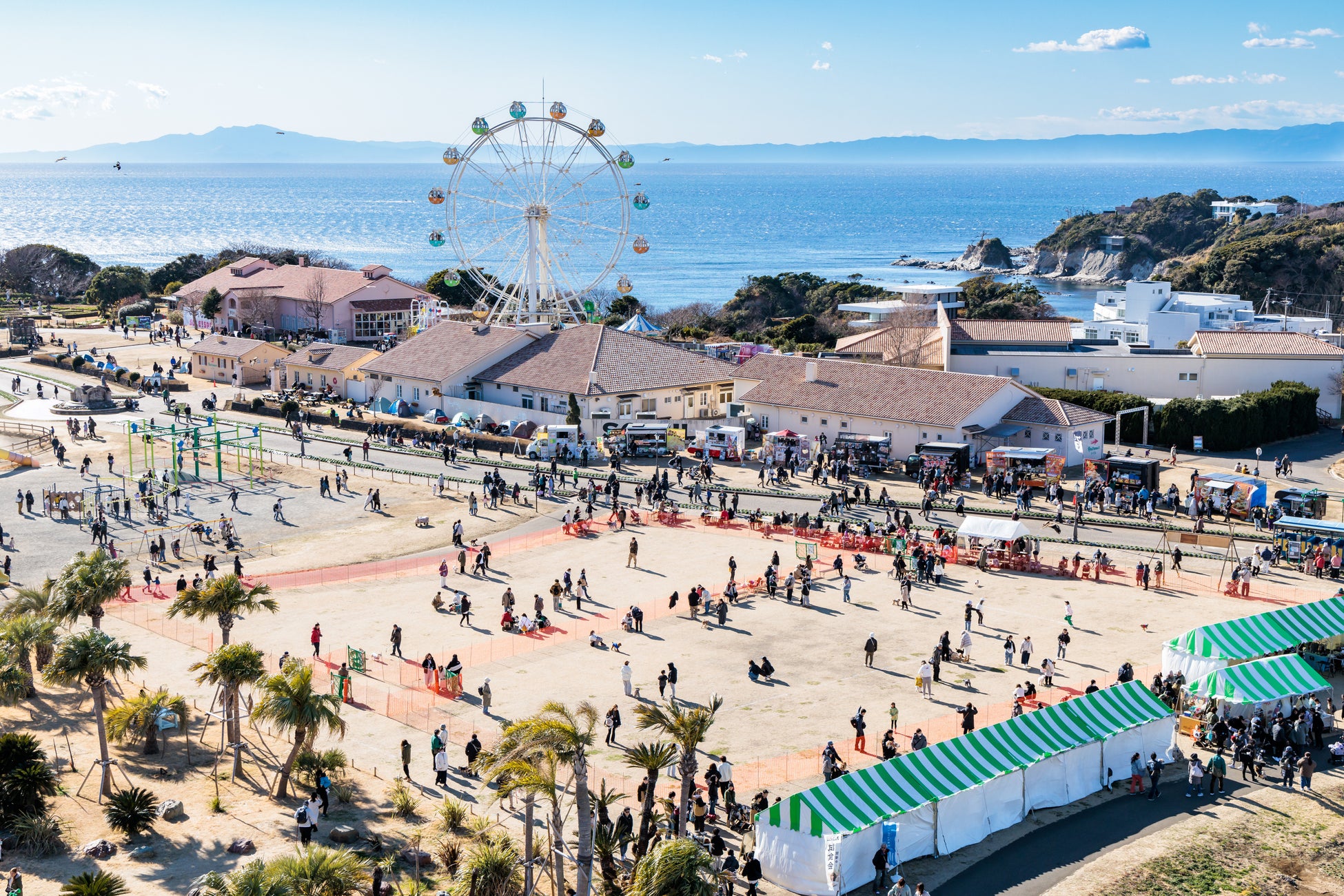 「365日誰もが遊び愉しみ尽くせるエンターテイメントパーク」として、2023年4月リニューアルオープン。都心から車で約70分の距離にありながら、1年を通じてさまざまな表情を見せる相模湾・伊豆大島・富士山などの絶景と園内に咲き誇る四季折々の花々、アスレチックやVRスポーツなど、世代や天候を問わず楽しめる公園です。さらに新設のイタリアンレストランはじめフードホール、ファストフード店など飲食施設も充実。