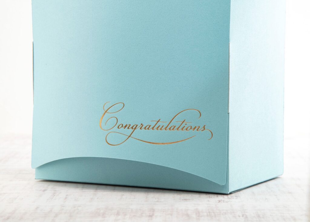 韓国のトレンドを取り入れたスタイリッシュなデザインで、どんなインテリアにも馴染みます 。正面のパーツは「Thank You」「Congratulations」「Happy Birthday」「無地」の4種類から、伝えたい想いに合わせて無料でカスタマイズ可能です。カラーバリエーションは、華やかなピンク、爽やかなブルー、シックなグレーの3色を展開します。
