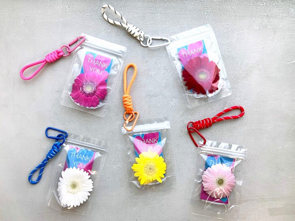 水やり不要の”生花のバッグチャーム”が誕生。 メッセージカードやカラフルなカラビナ付きストラップで自分らしさを演出。
