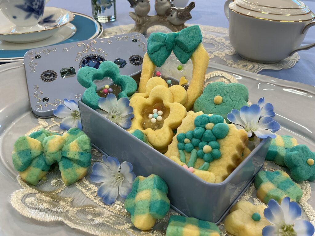 ネモフィラの花畑をイメージしたおしゃれなクッキー缶です。