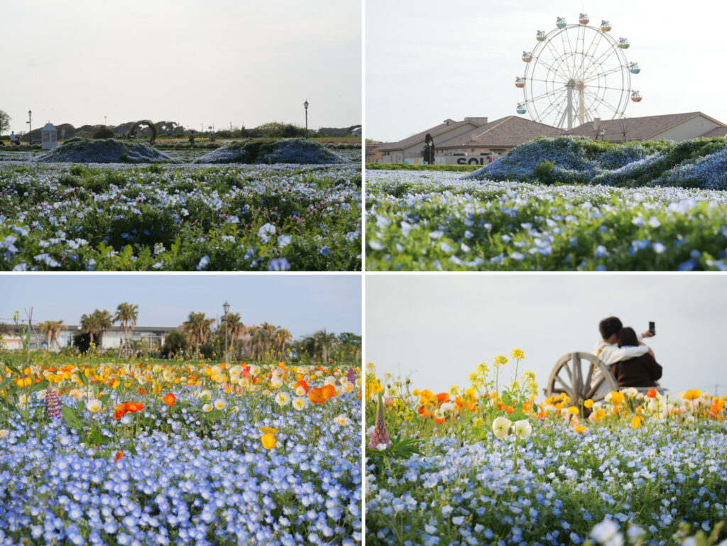 さらに今年は、園内の観覧車を背景にしてネモフィラとともに撮影いただける青い丘をフラワーガーデンイーストにご用意。