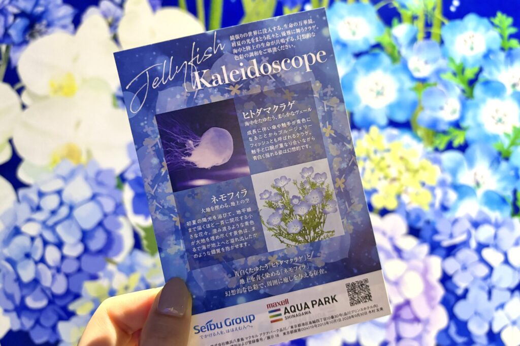 あわせて各水槽には、クラゲと花の解説に加え、お互いの共通点から導き出したメッセージを添えたポストカードを設置。視覚的な華やかさはもちろん、生きものと花の奥深いストーリーにまで触れていただけるコンテンツをお届けします。