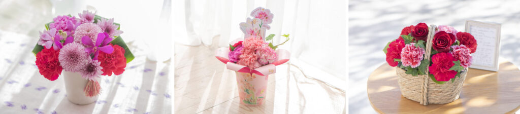 「花からひろがる、想いの循環」というテーマから着想し、お母さんへの感謝が、花を育む生産者から、花を贈る人、受け取る人、そしてその先の日常にまで笑顔を広げていく。そんな花から始まる温かなつながりを大切に、本年の母の日ギフトを企画しました。日々、花のある豊かな暮らしを提案し続ける日比谷花壇だからこそ、多くの人々が想いを伝える母の日に合わせ、国産花材の魅力を広く発信したいという思いから、本年は全国の生産者が育てる高品質な国産花材を使用した商品を拡充しました。